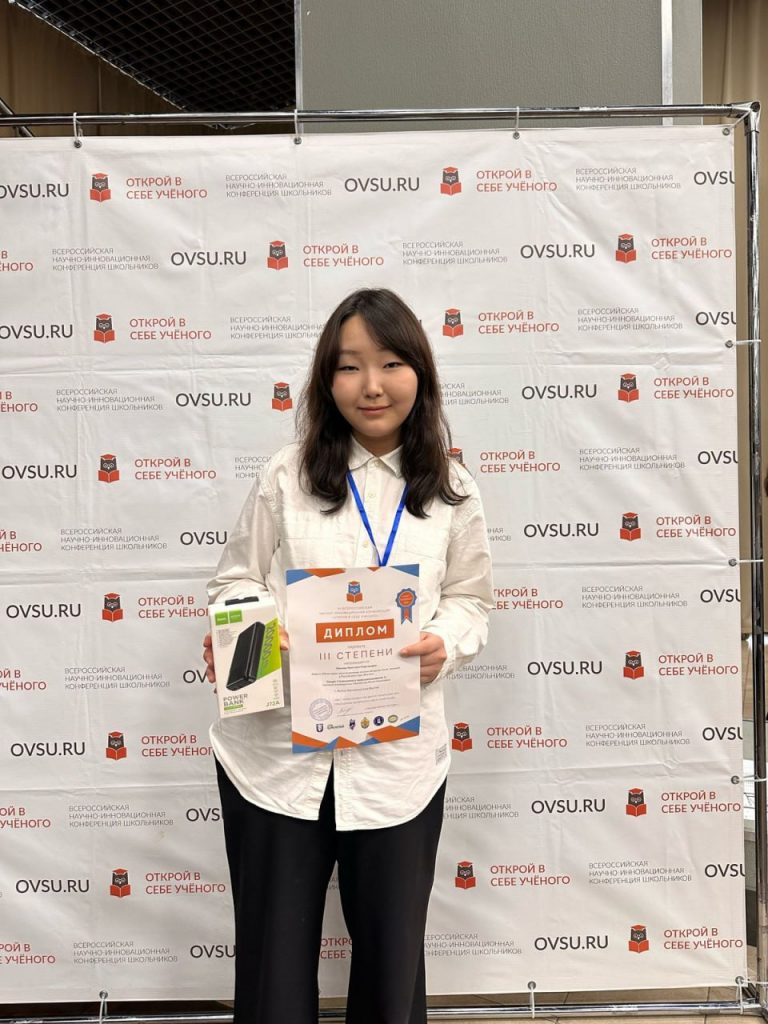 🔹 Николаева Ирина — Диплом III степени в секции «Творческие проекты» (руководитель: Прудецкий Роман и Спиридонов Ньургун).