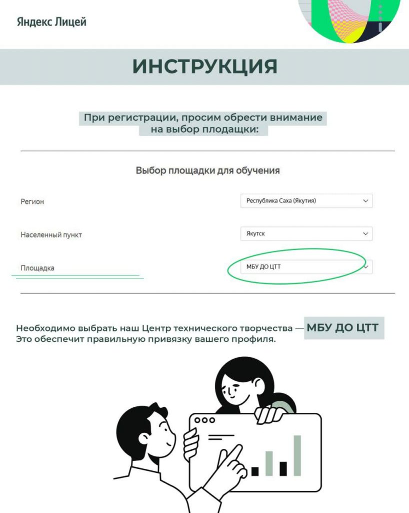 - Из предложенных вариантов учебных площадок выберите именно нашу организацию — Центр технического творчества (МБУ ДО ЦТТ)